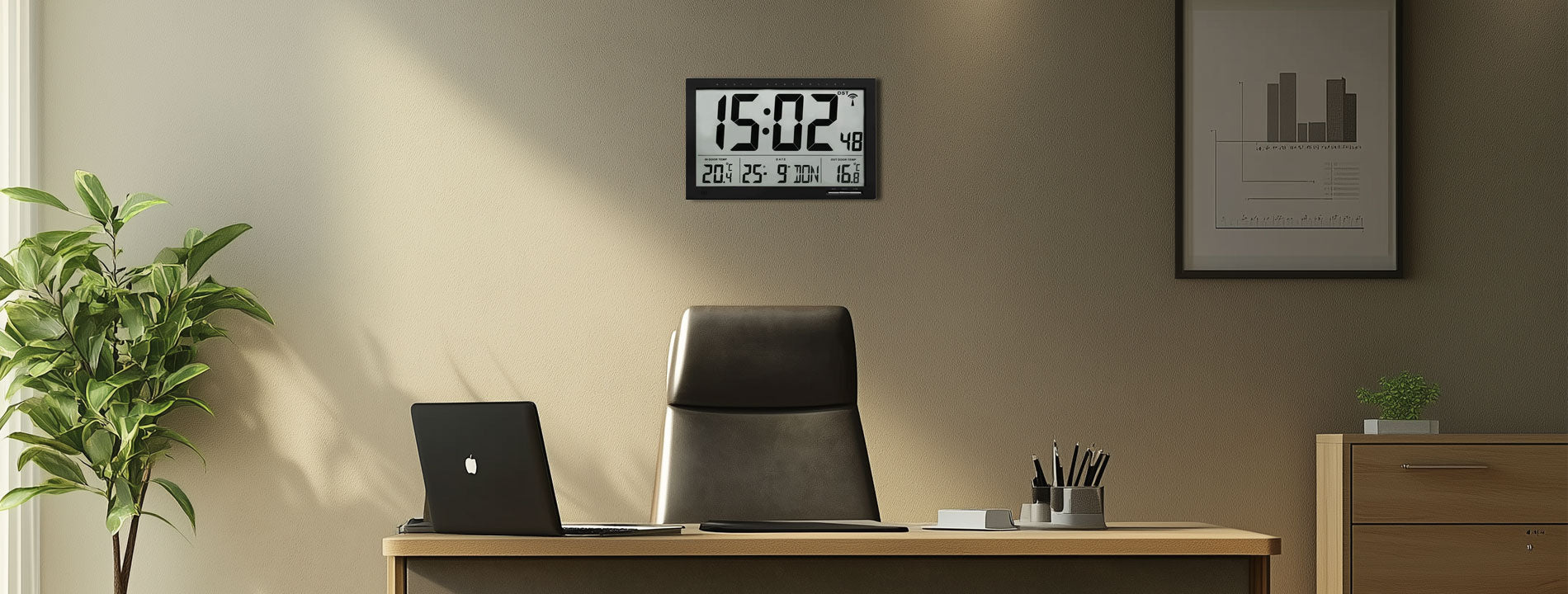 Stay effortlessly on schedule and keep track of essential information with our selection of digital wall clocks.