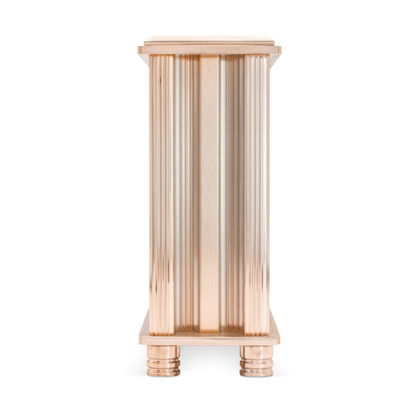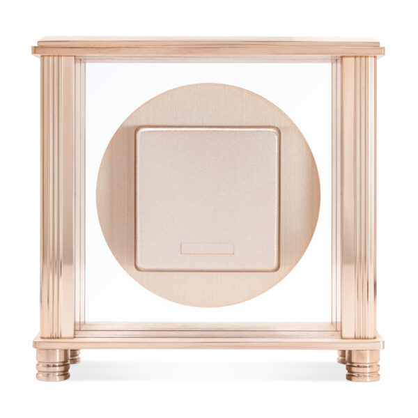 Shelford is a neoclassic. The elegant, timeless lines and contemporary glass setting will enhance any mantel or table top. Finished in rose gold, Shelford also features a glass lens and energy efficient quartz movement.